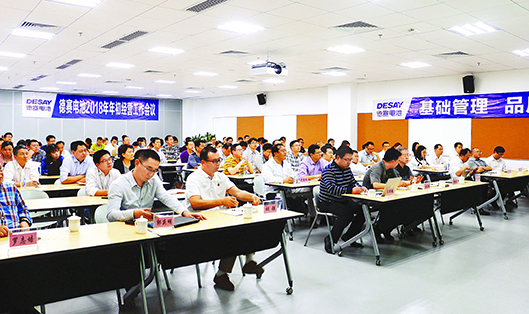3月5日,惠州德賽電池公司召開2018年年初經營工作會議,公司管理層、各部門主管及關鍵崗位人員代表共110人參加會議。程月帆總經理就2017年度的經營狀況做了分析、回顧和總結,并對2018年度重點工作進行了部署;曾劍云董事長作發展戰略專題報告,發表總結講話。