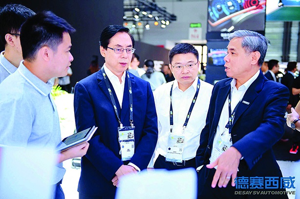 集團姜捷總裁在德賽西威董事長陳春霖的陪同下親臨展臺,參觀和體驗智能黑科技。