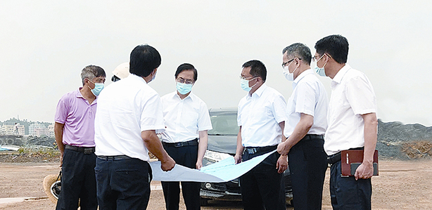 在施工現場,集團領導認真聽取了項目建設用地征拆工作進展和工程施工現場管理工作報告,詳細詢問了項目建設質量管理、安全防范、細分項目進展和疫情防控等情況,并對照施工圖紙和有關管理規范文件實地查看了各個施工點的具體情況。姜捷總裁在現場強調:項目組和各部門要緊密配合,凝心聚力抓好項目進展、項目質量、項目安全;要進一步加強當地政府部門的溝通對接協調,確保相關工程實施合法合規、落實順暢;要繃緊疫情防控的弦不松懈,雖然當前我國新冠肺炎疫情防控取得了階段性的成果,但切不可麻痹大意。